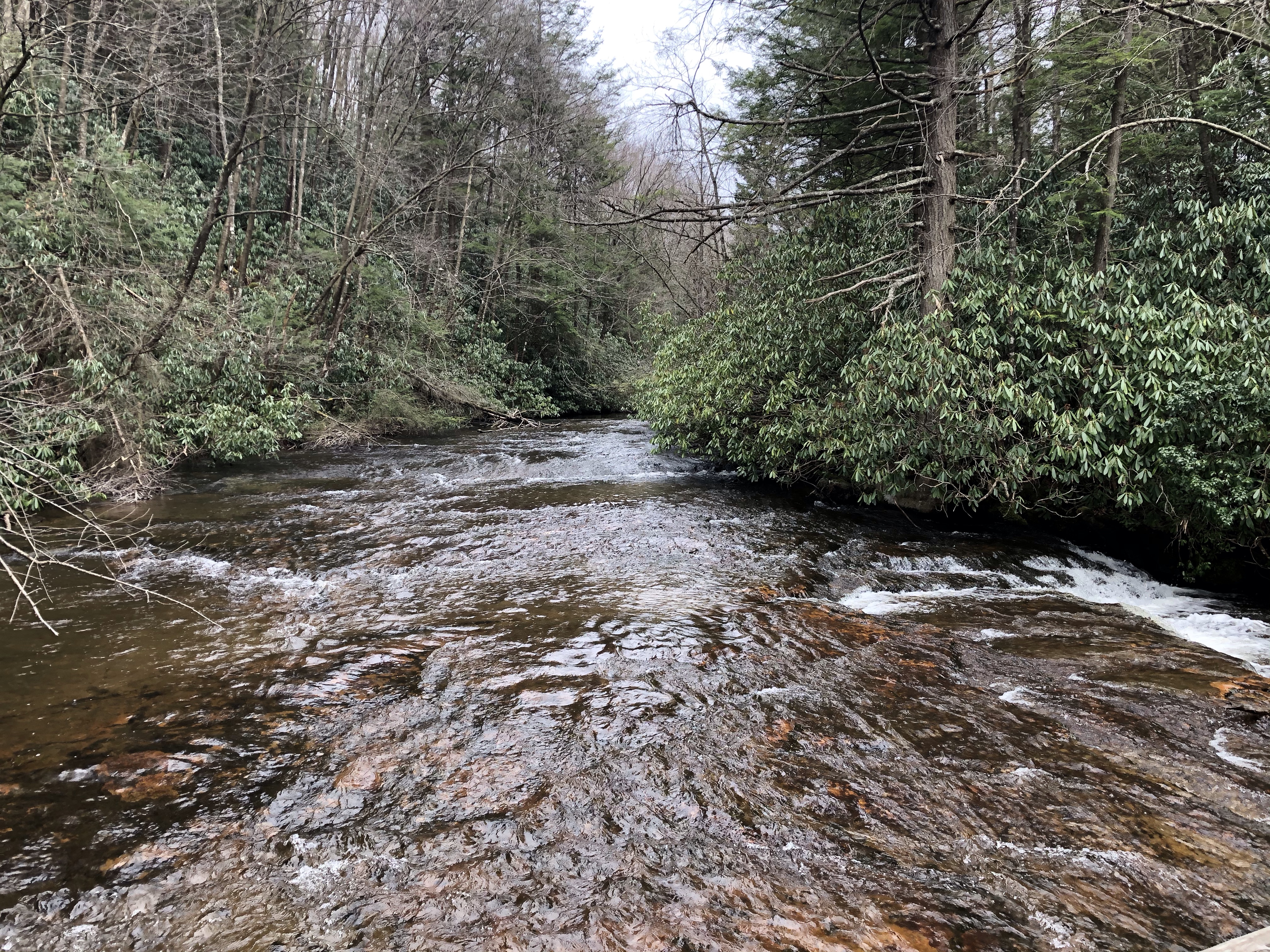 I can’t say how the fishing is on the lower end of this watershed, but the upper end is a choked with downfalls and the good holes we found held no Brook Trout.