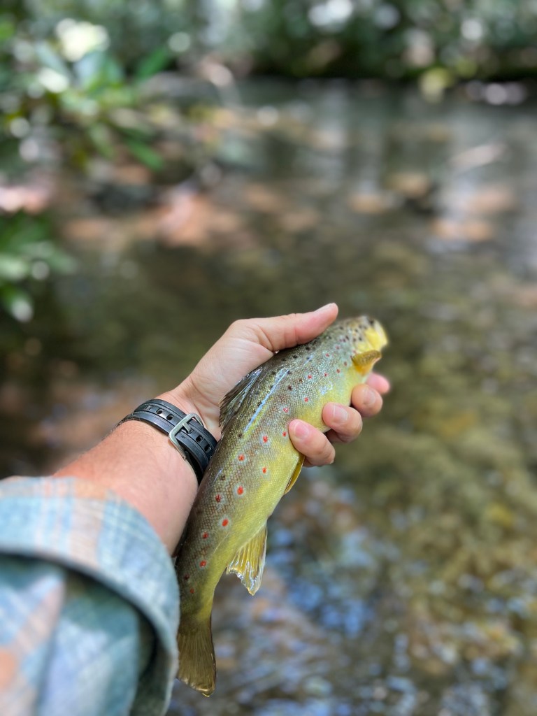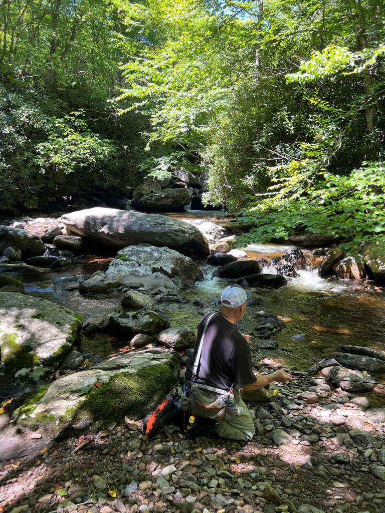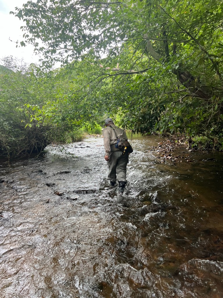 Day 2 we (no breaks during 2AD’s) we headed to some new water; One small stream and one larger river. Tangled rhododendron, snagged tree limbs, confusing maps, a fight with a brown-recluse while unsnagging a fly from a deadfall, and foreboding warnings about rattlesnakes and bears were the only highlights.