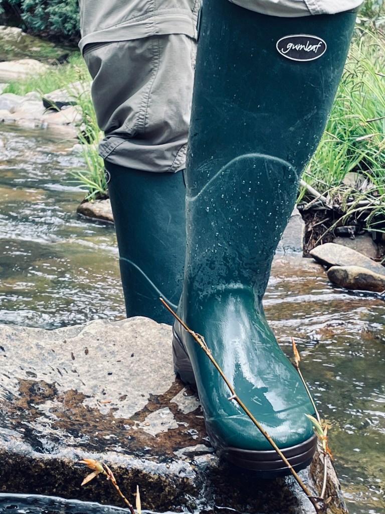 I was looking for a non-Chinese rubber boot – a boot built to endure a decade of mountain trout fishing and bow hunting – and I found these at Gumleaf USA; made in Slovakia from real rubber and with Vibram soles. They are comfortable, sturdy, and grip the rocks surprisingly well for a non-studded boot.